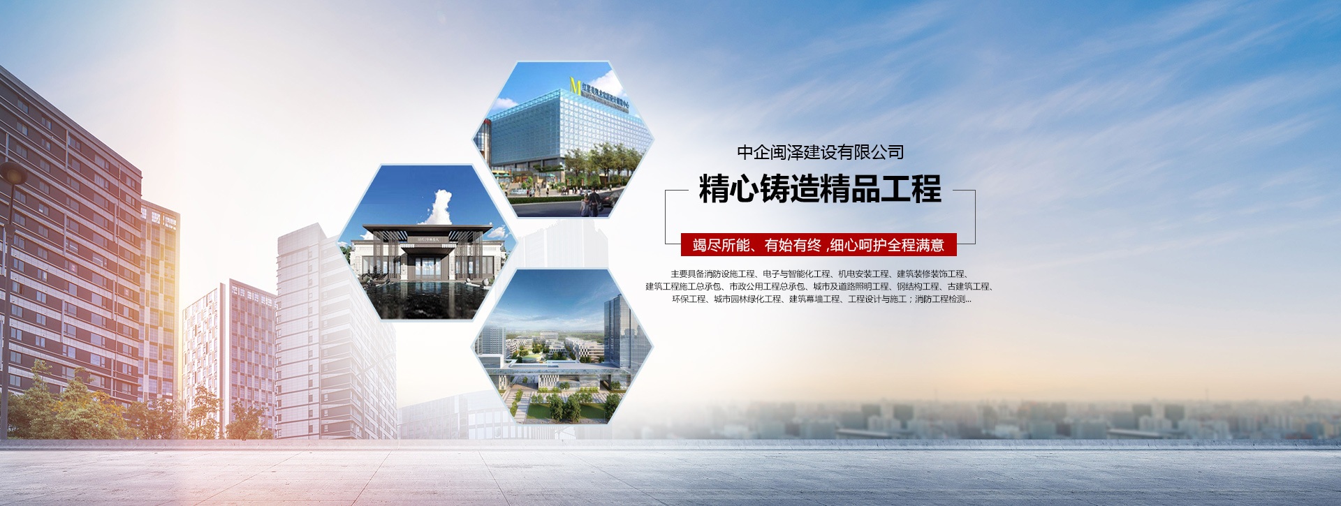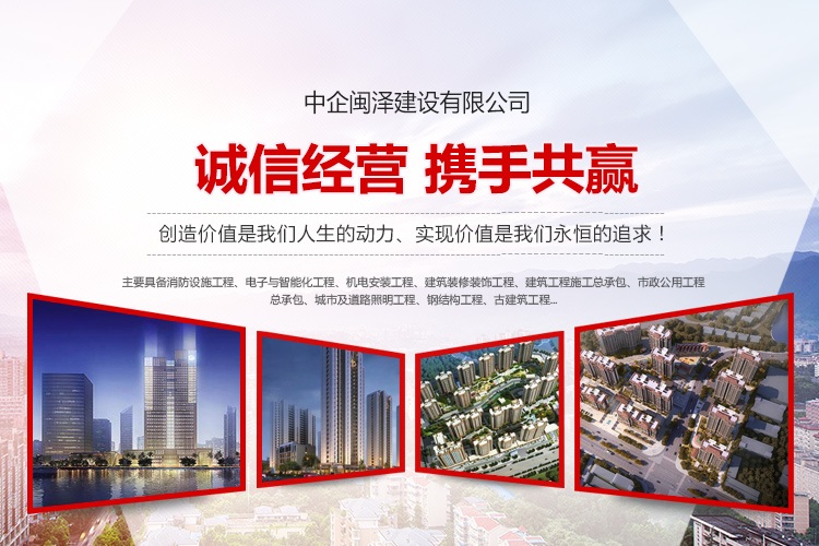 中企閩澤建設(shè)有限公司成立于1995年,注冊(cè)資金壹億元整,目前為壹級(jí)資質(zhì)企業(yè),主要具備消防設(shè)施工程、電子與智能化工程、機(jī)電安裝工程、建筑裝修裝飾工程、建筑工程施工總承包、市政公用工程總承包、城市及道路照明工程、鋼結(jié)構(gòu)工程、古建筑工程、環(huán)保工程、城市園林綠化工程、建筑幕墻工程、工程設(shè)計(jì)與施工;消防工程檢測(cè);消防設(shè)施維護(hù);施工勞務(wù);消防設(shè)備領(lǐng)域內(nèi)技術(shù)研發(fā)等資質(zhì)。公司成立以來(lái),一步一個(gè)腳印,建立了嚴(yán)格的企業(yè)管理制度和完善的質(zhì)量保證體系,嚴(yán)格規(guī)范遵守操作流程,創(chuàng)業(yè)精神和“誠(chéng)信、務(wù)實(shí)、發(fā)展、共贏(yíng)”的企業(yè)精神,積極倡導(dǎo)企業(yè)文化,把以人為本的理念貫穿于公司發(fā)展的全過(guò)程。