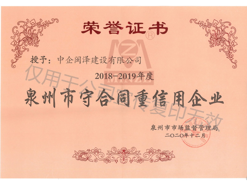 守合同重信用企業(yè)榮譽證書