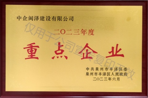 “重點企業(yè)”榮譽稱號