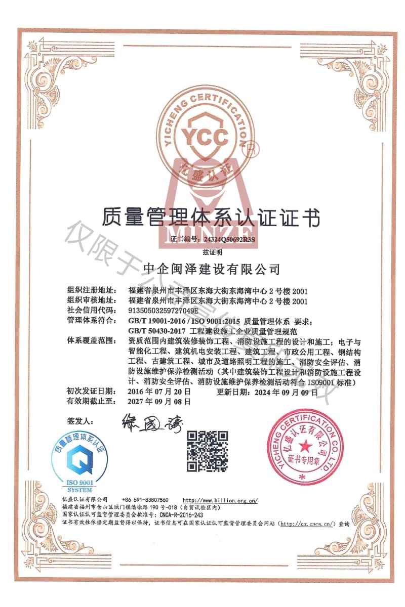 質(zhì)量管理體系認(rèn)證書